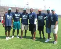 Joined by J.T. Wall, Maurice Harrell, Joe Dupree, Mitch Davis, Bill Montgomery, Greg Tremble and Charles Pledger, who also all suited up for the Bulldogs in the early 1990s, Jones hosted the inaugural Travis Jones Football Fundamentals Youth Camp. Jones, a native of Irwinton, said 142 children ages 8-15 attended the July 1st camp and that it was a fulfilling experience for the campers as well as for he and his former teammates.